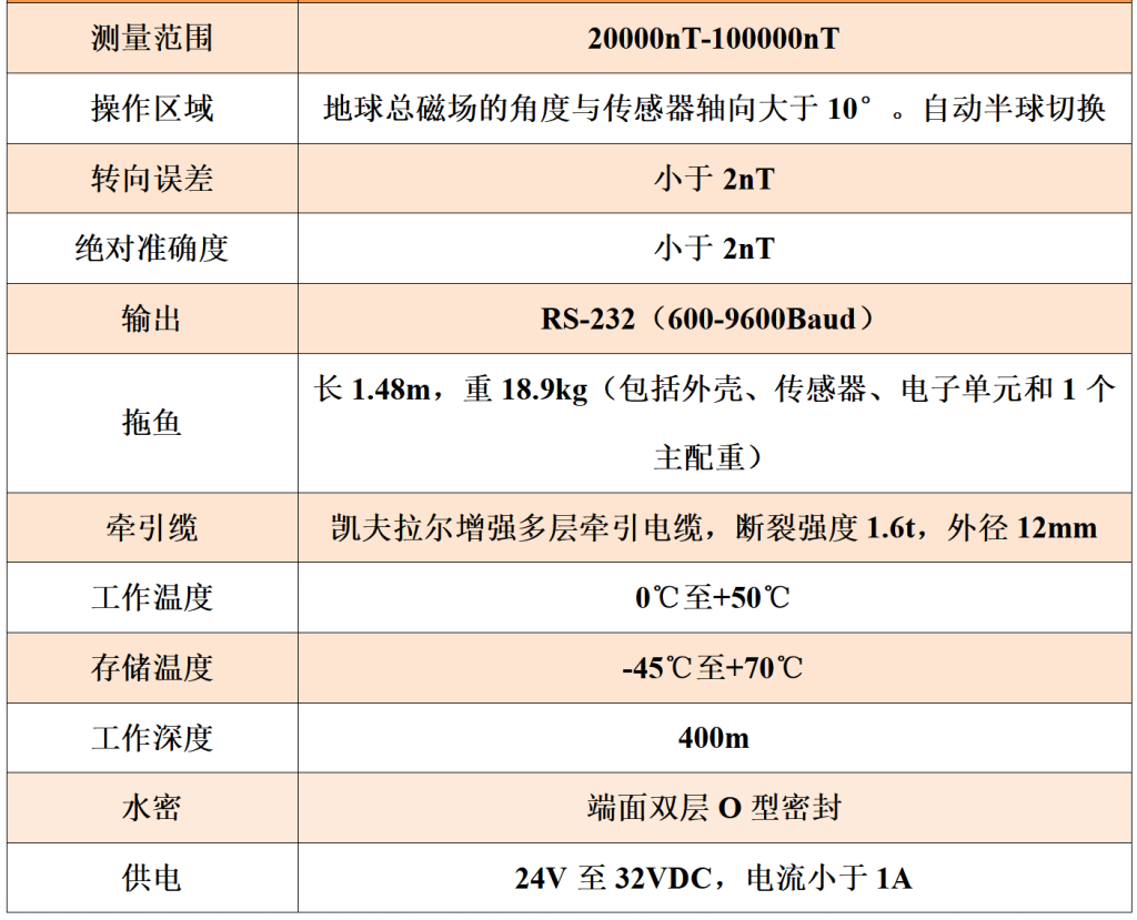磁拖鱼是一款由无人船等载具拖拽、低成本、高性能、小型化的水下磁力调查设备,可通过上位机软件进行记录、显示磁场数据与RTK位置。最高采样率可达10Hz,最大工作深度为400m。